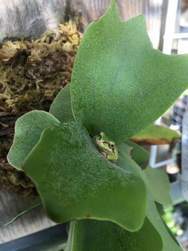 コウモリランの葉によく居るカエル。
