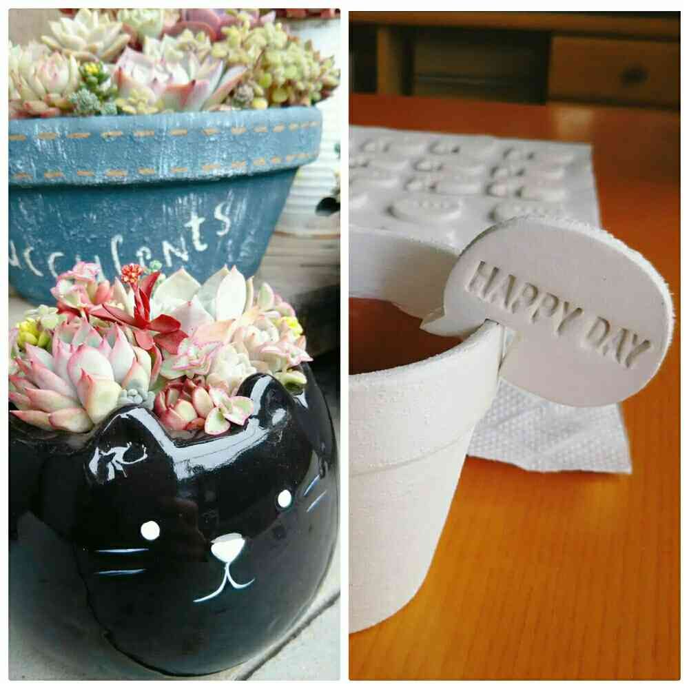 リメ鉢に引っかけてるのが、粘土なの⁉️可愛い❣️😆