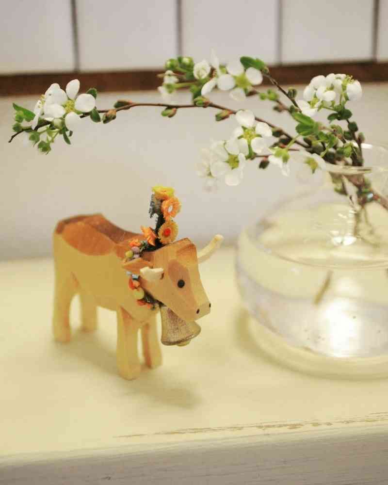 お気に入りの小さな牛くんにも手伝ってもらってトイレの飾り棚へ