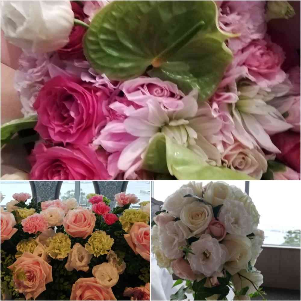 いちばん上の花束は、新郎が自分のお母さんに贈った花束💐 綺麗だったので、ちょっと写させてもらった😄♪