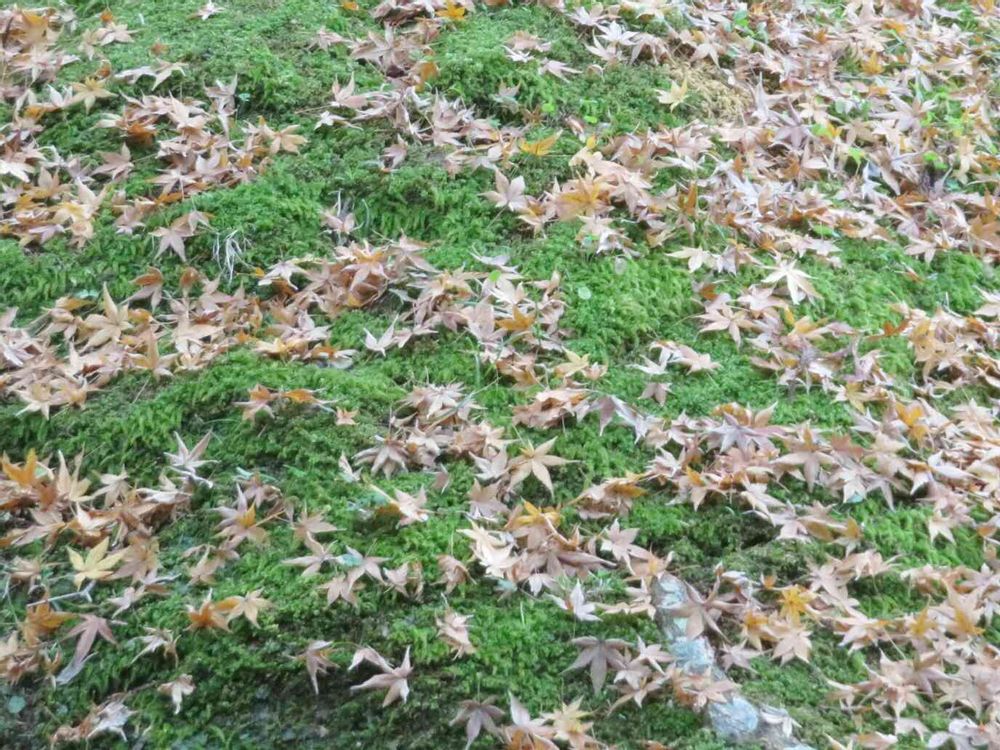 あまり見かけない黄色いモミジの落ち葉✨、緑の上に降りて来て素敵でした😍💕