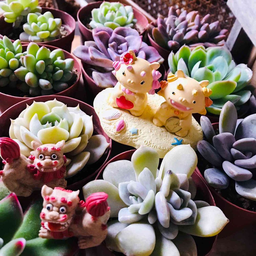 カラフルな多肉ちゃんに、カラフルなシーサー👍 賑やかでいいね〜🎶