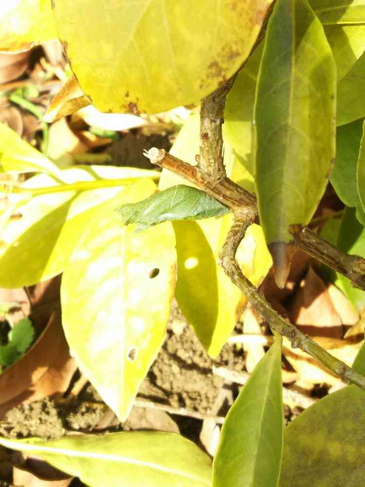 花壇を見てたらニオイバンマツリに何の🦋かわからないけどサナギが着いていました✨