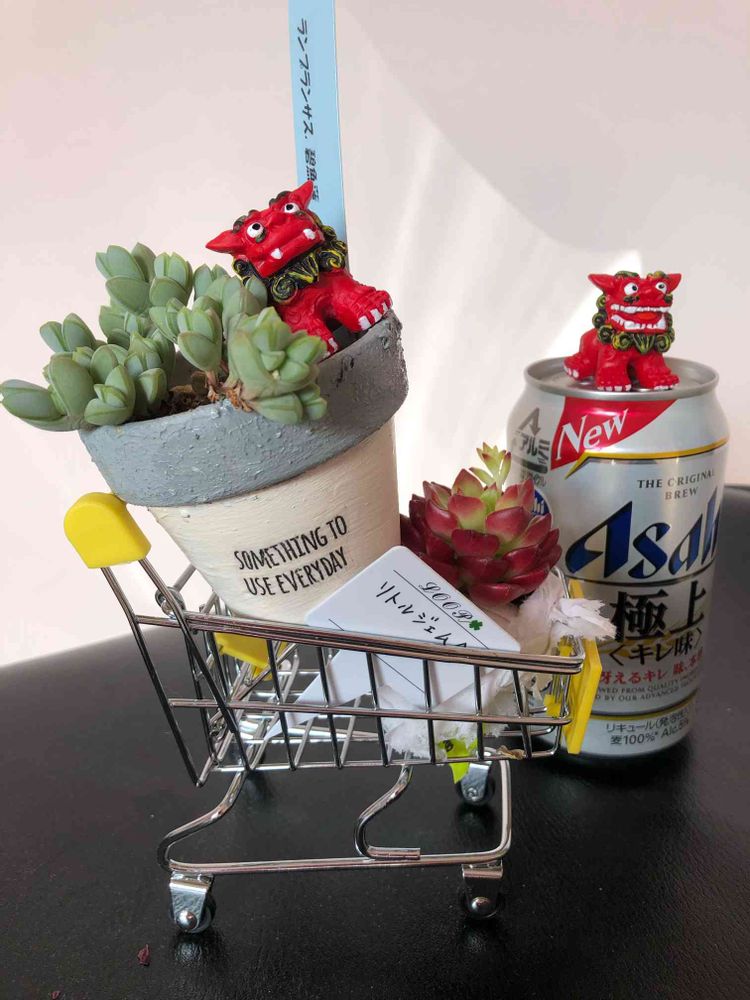 多肉ちゃんと赤のシーサー👌💞ですよ