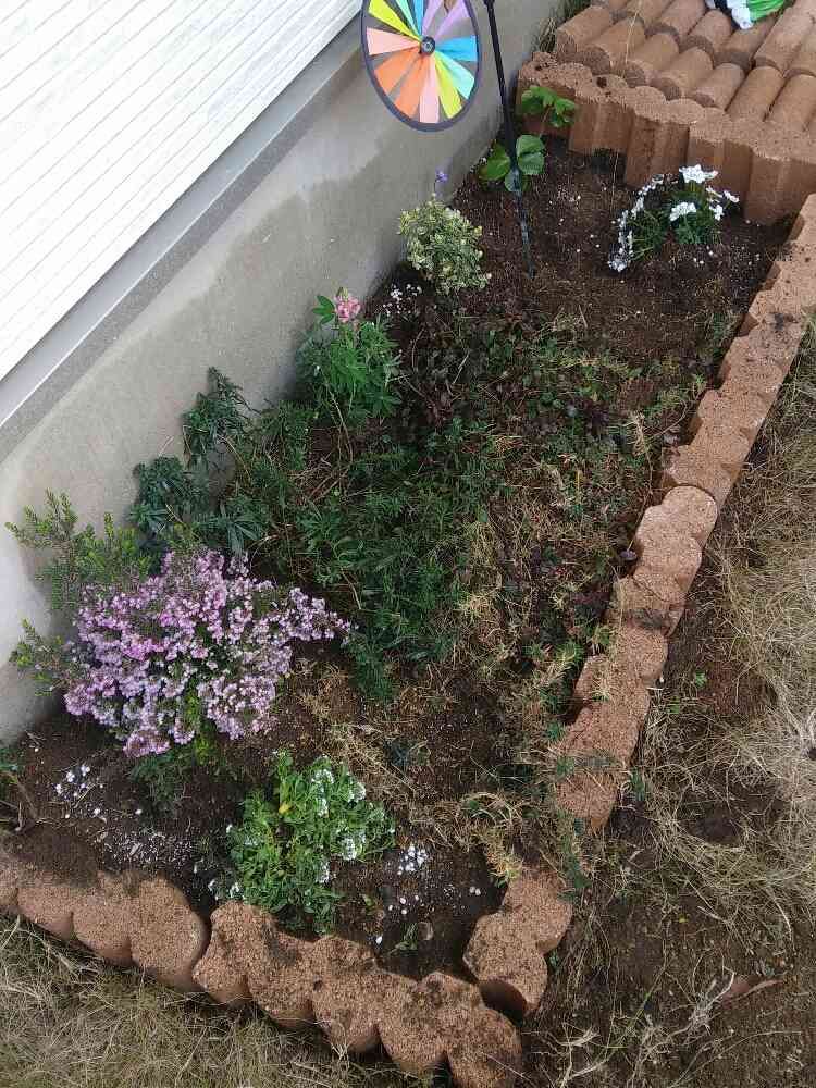 西日の半日陰の過酷な場所なので既存の育った植物と新参者を組み合わせました🌼🌿