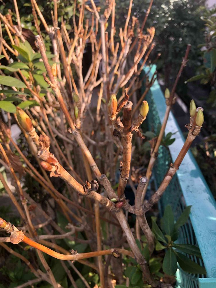 我が家の、薄い水色〜紫色の『紫陽花』の芽が出て来ました。