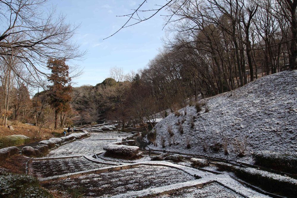 こちら薬師池では昨日の雪がうっすら残っていました。