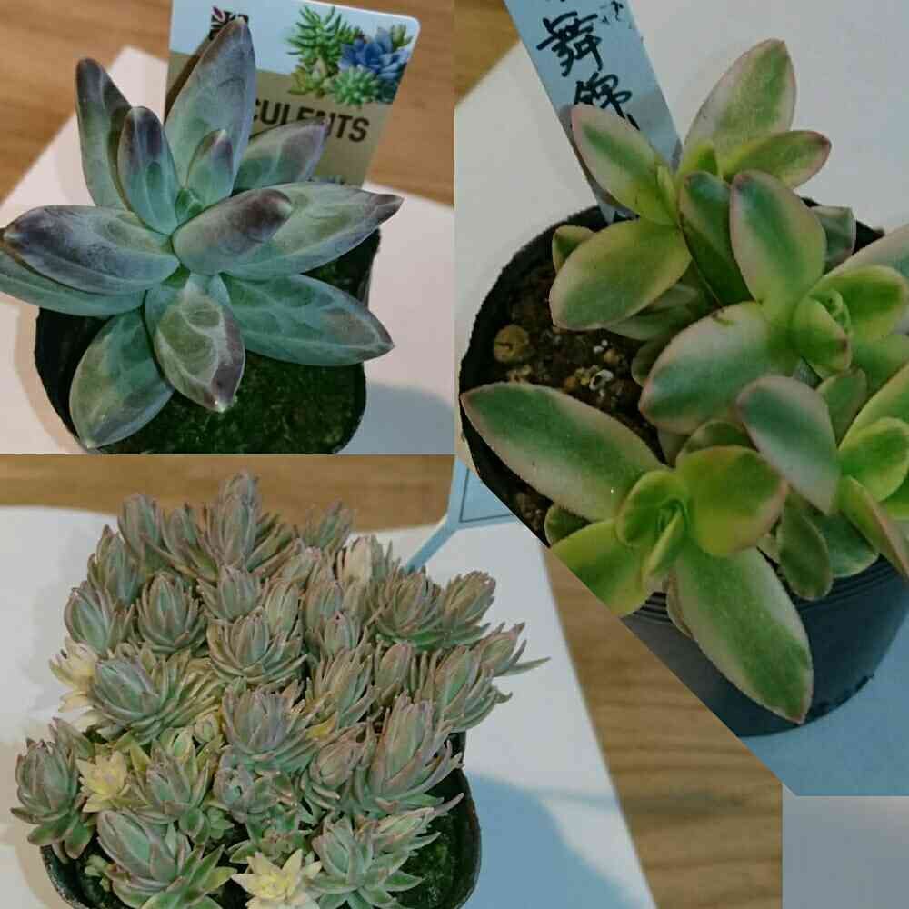 左上千代田の松 左下名無しのセダム 右天狗の舞錦