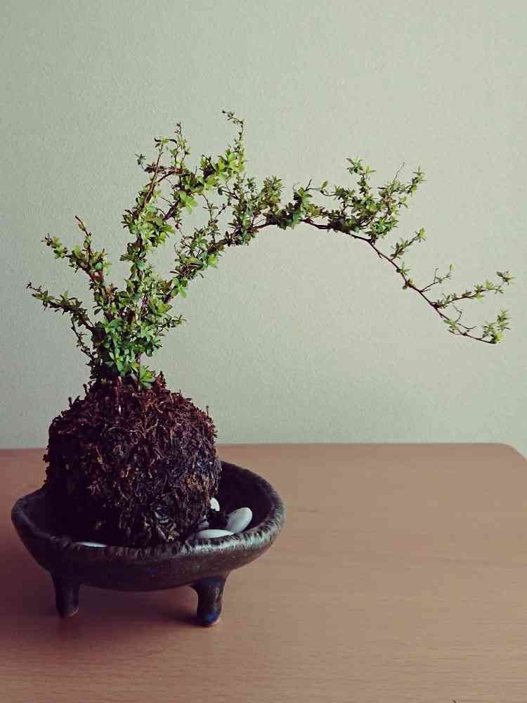 一年前に作った雪柳の苔玉。新芽がたくさんでてきました。