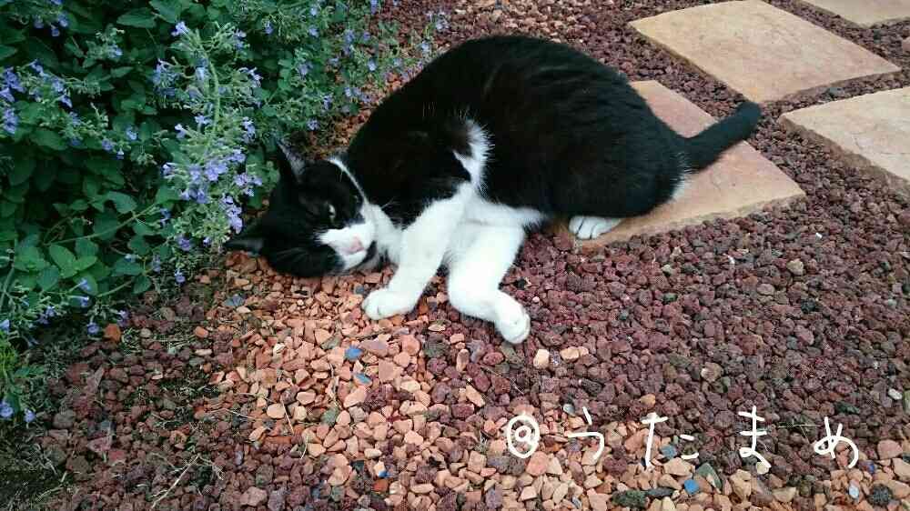 はい、スリスリして、この後、キャットミントの茂みの中にもぐり込みました❗