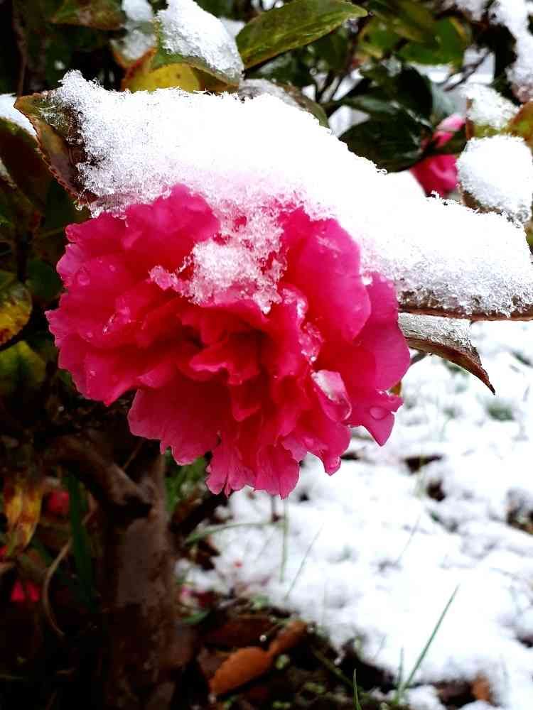 白い雪に鮮やかなお花がとても映えます🌸