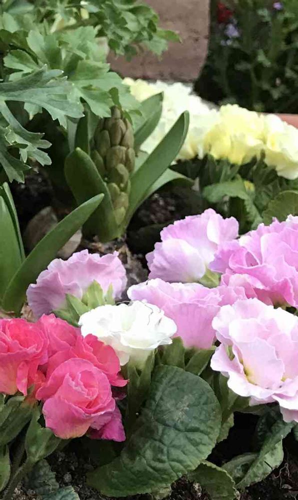 キュートなブリブリ❤️のパステルカラーが、ヒアシンスの色付きを待ってます🌷