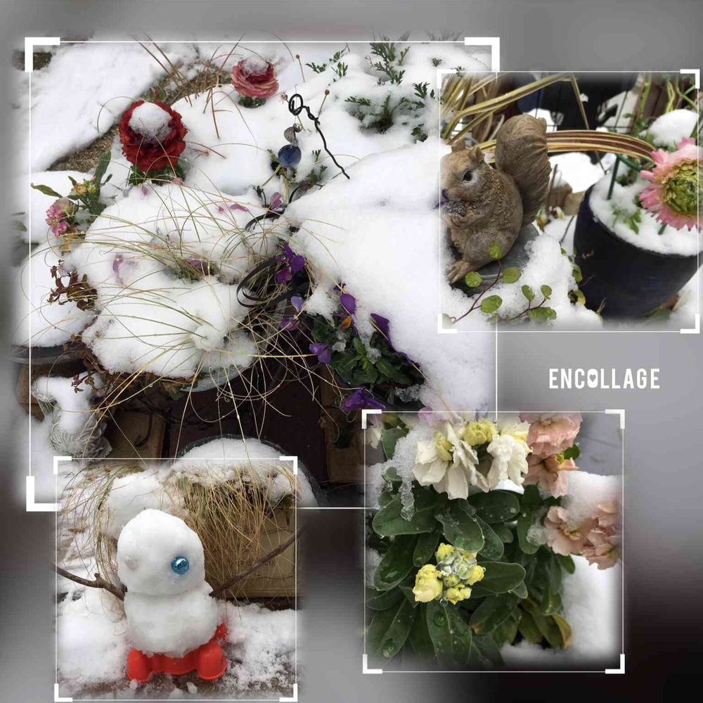 花壇もお花が埋もれてしまってた〜昼まで降っててもう夕方には溶けてたけど💦