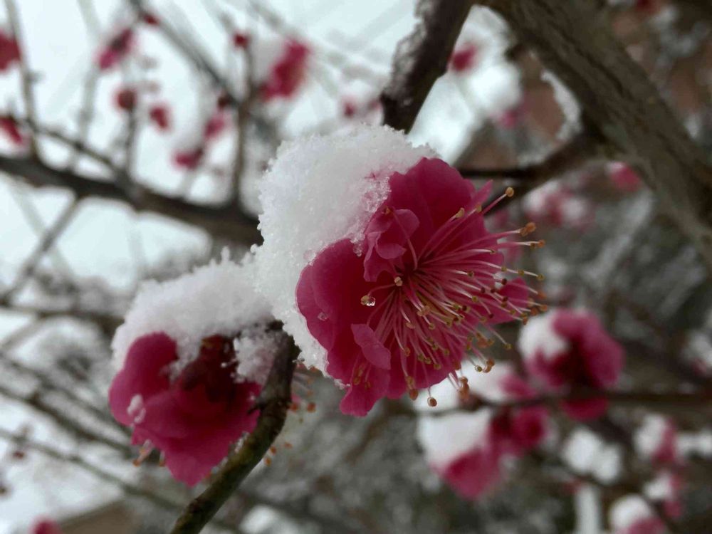 お出かけ先,紅梅,雪景色の投稿画像
