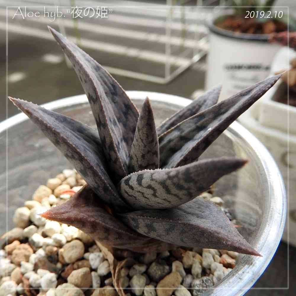 アロエ、夜の姫。この名前は、冬に紫色に紅葉することによるらしい。まさに子のいろだと思う。渋い、模様がカッコイイ。そして小さくてかわいい(今のところ)。今後どこまで大きくなるのだろうか?