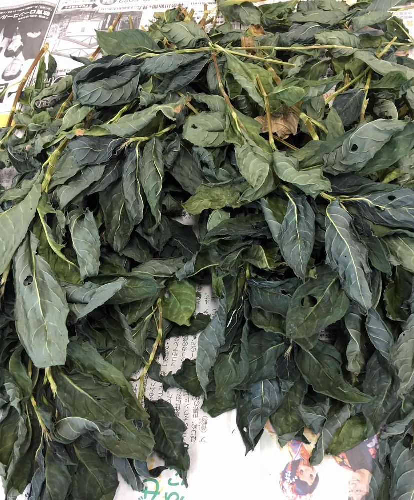 刈り取ったばかりの時は、綺麗な緑色でしたが、乾燥してくるにつれてだんだん藍色になってきました*\(^o^)/*