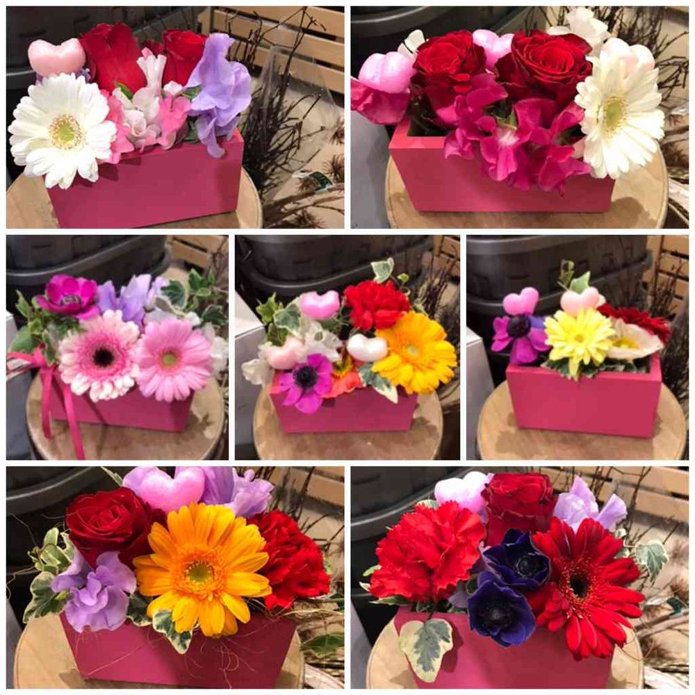 バレンタイン向けにラブリーな花や器を使ってアレンジを作って頂きました(^^)