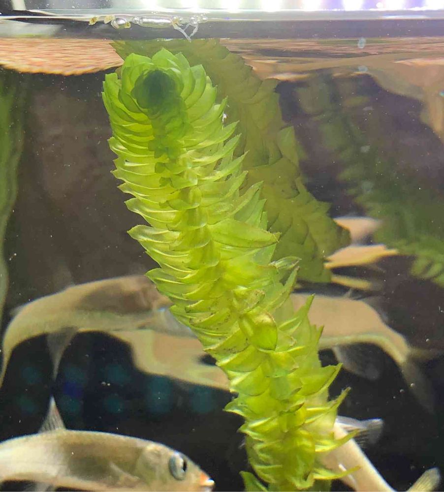 外部フィルター洗ったばかりだから水位が低いせいもありますが、アナカリスが水面に到達して横這いし始めてしまいました。
