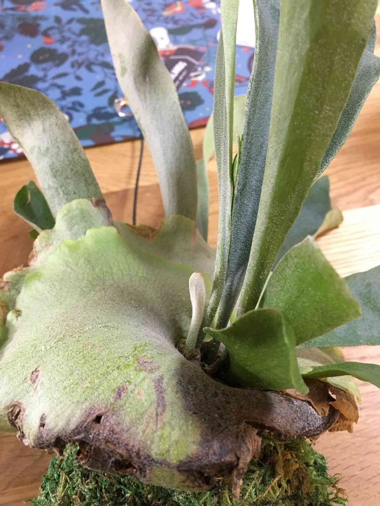 ビカクさんは着生種なので土が無い環境で自分の古い貯水用を腐らせ腐葉土の様にして栄養素に変え成長する水さえ与えれば自己完結する植物です。