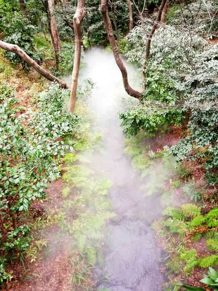 人工的に霧を発生した庭園