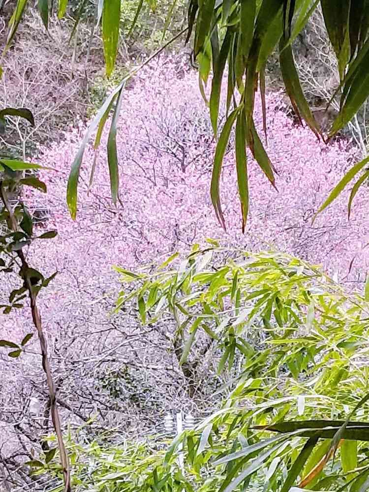 とっても綺麗なピンク💞見つけた。オフシーズンクローズ中のテラスから。でも、これ以上何が咲いているのかわからないの。ナンの木でしょう❔無茶な質問でしょうか…