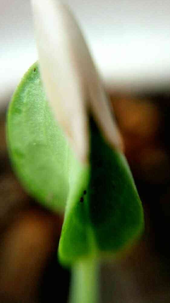 食べ終わったメロンの種です。キッチンで発芽しました🎵