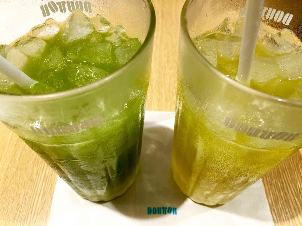 同じグリーンレモティというものを頼んだのに見るからに色が違ってて笑えた😁