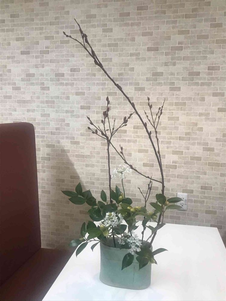 椿を使いました💕 白い可憐なお花はアリウム ネオポリタヌムという名前らしいです!めずらしい…😲