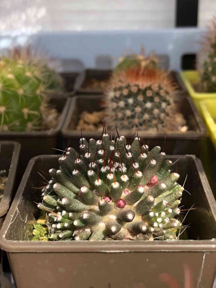 名札は『ミニサボテン』となっていて、成長点いっぱいある?みたいな見た目の子でした(18/10/18投稿)が、その後みっしり育って全体的に丸いフォルムに。