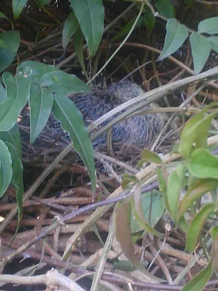 外出から帰るとキジバトの親鳥は既に巣に戻っていました