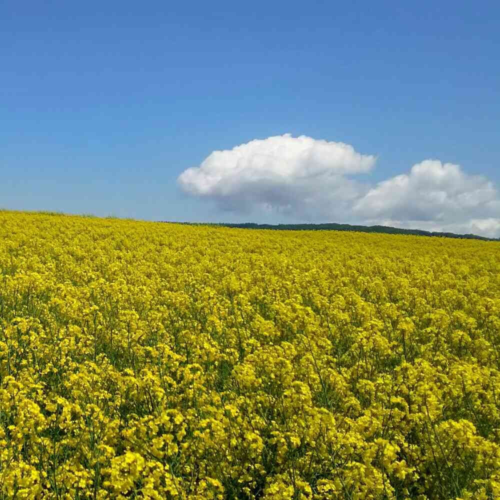 滝川の町はこじんまりとしていて、のんびりと落ち着く場所ですよ。この菜の花畑は高いところにあるので、滝川の町が一望できて、とても美しく見渡せるんでます(*^^*)