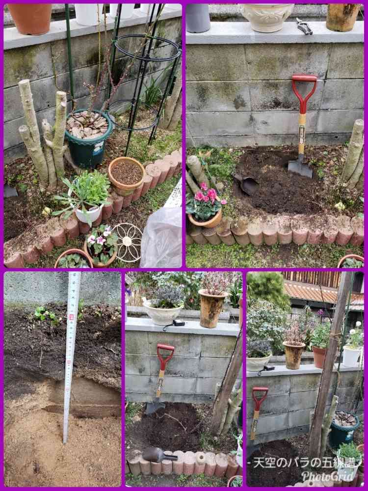 今日は予定通り、午前中は庭のほぼすべての鉢に、液肥をまき、午後からは7つ目の鉢植えから地植えへの移植を行いました。つるバラ・アルティッシモです。