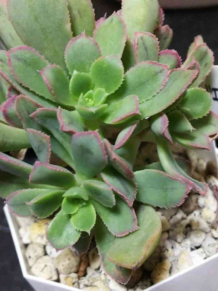 寒い中新しい葉も出て育っていて、縁どりがピンクになってきて、かわいい子だと言うことが判明しました( ー̀∀ー́ )