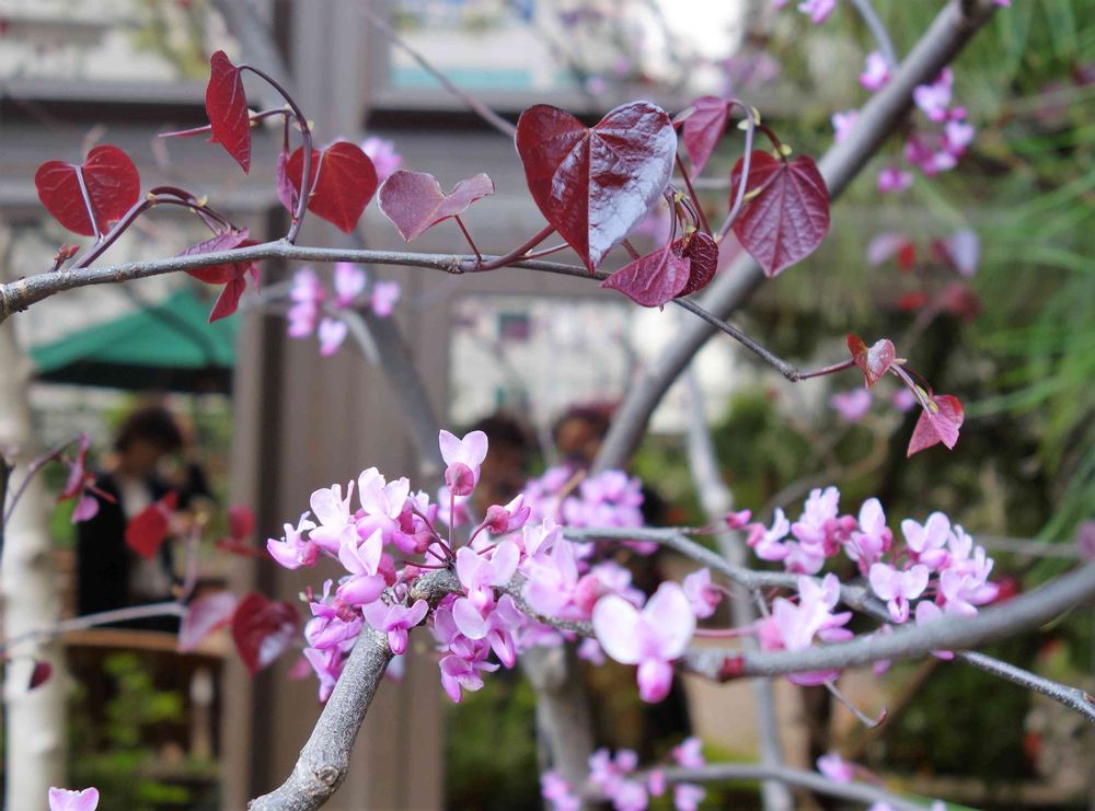 花はハナズオウに似ていたので調べてみるとアメリカハナズオウとわかりました。その時セルリアの花も初めて知りました。流石おしゃれな街に似あう花達でした。