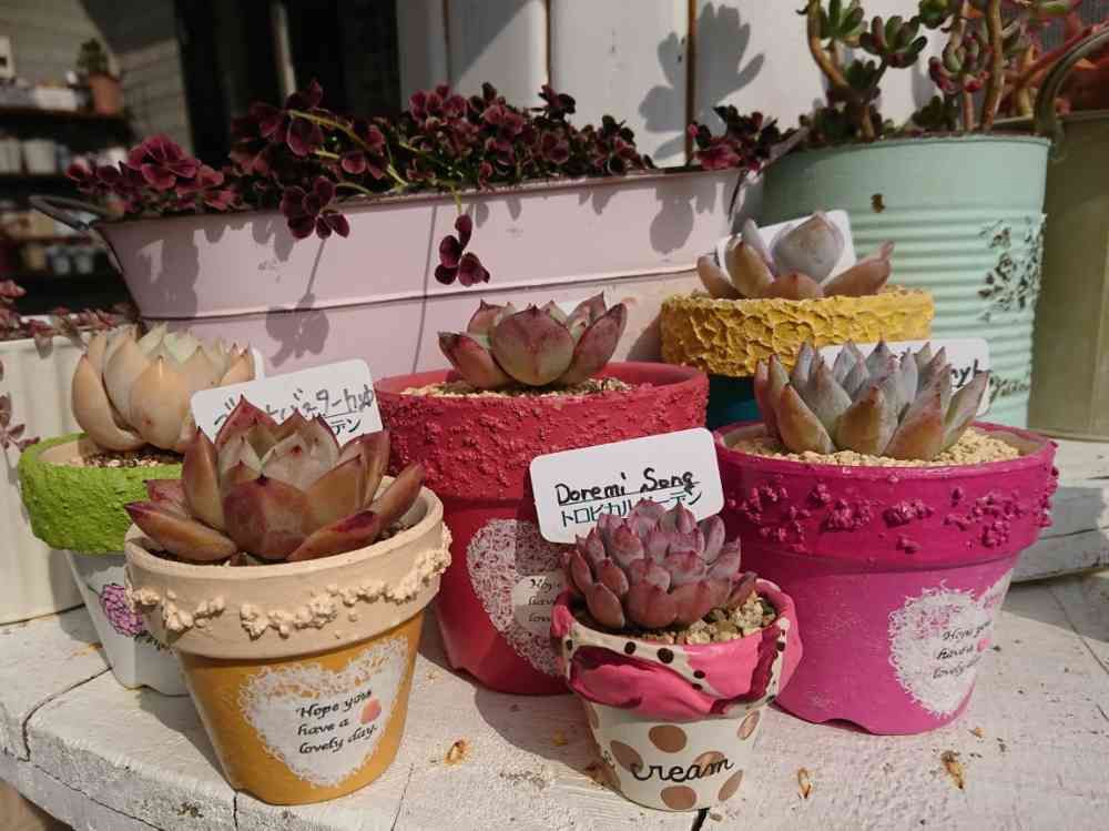 ちゃん💕多肉が色づくと、鉢も可愛くしたくな🤗