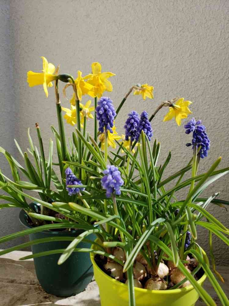 ムスカリと水仙の鉢植えを並べると素敵ですね😍