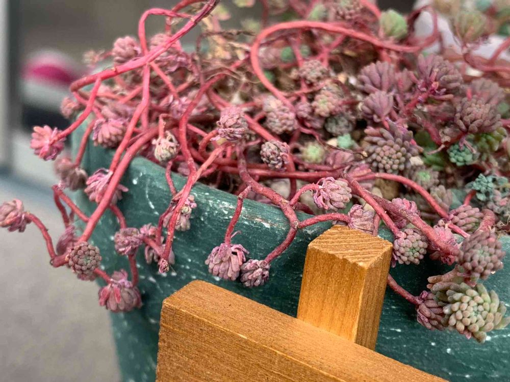 家のセダムも、ちょっと伸びてる子はシオシオ💦水やってもイキイキしないの💦