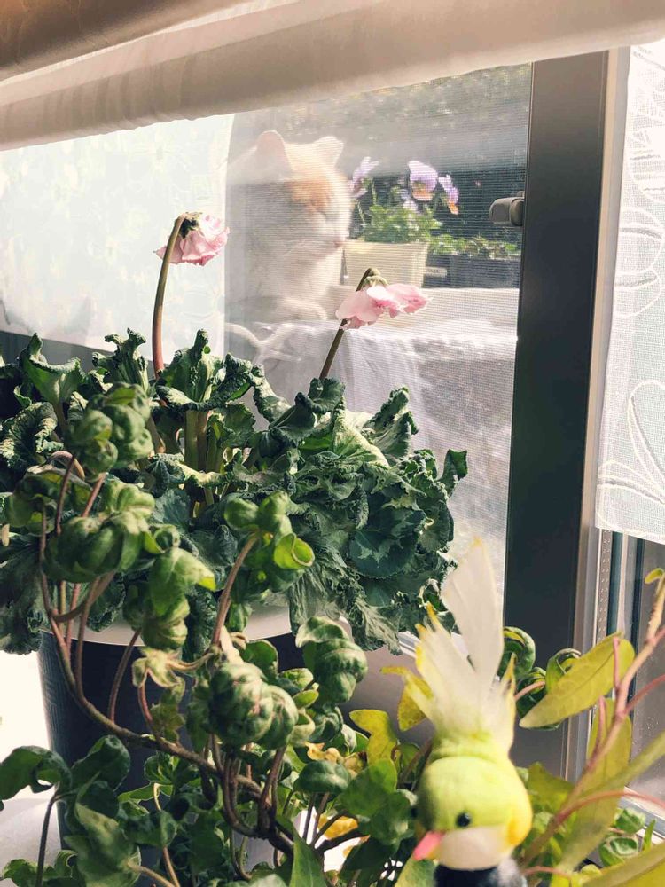 部屋の中から外の多肉棚の上で寝ているこまちゃんを撮りました🐱♪̊̈♪̆̈