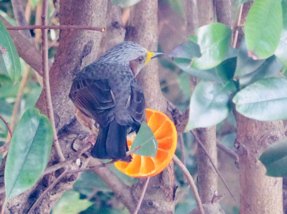 ミカンを刺したらすぐやってきたヒヨちゃん😻