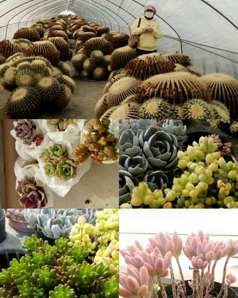 伊豆のハウスはイチゴが顔を出してますが、こちらは巨大サボテンさんがお腹出してましたよ✨