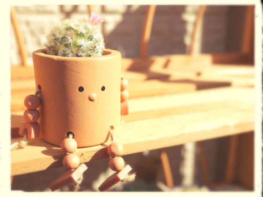 サボテンも気持ちよさそう、ピンクの花がリボンみたいで可愛い!(≧▽≦)☆