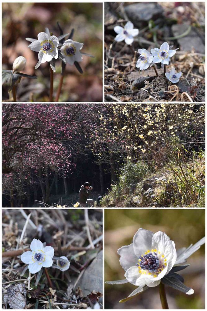 セツブンソウの他、紅梅、ロウバイ、マンサクが咲いています。