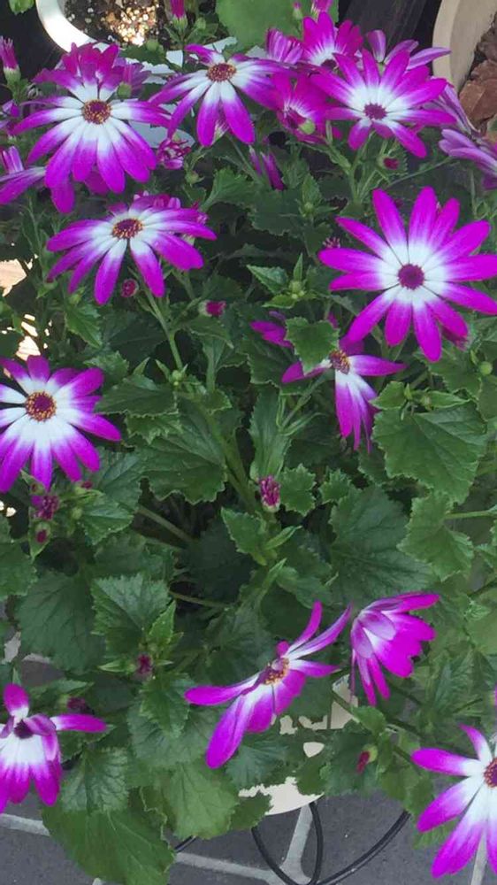 サイネリアさん、綺麗に玄関先で咲いてますね💓見るたびウキウキしそう♡