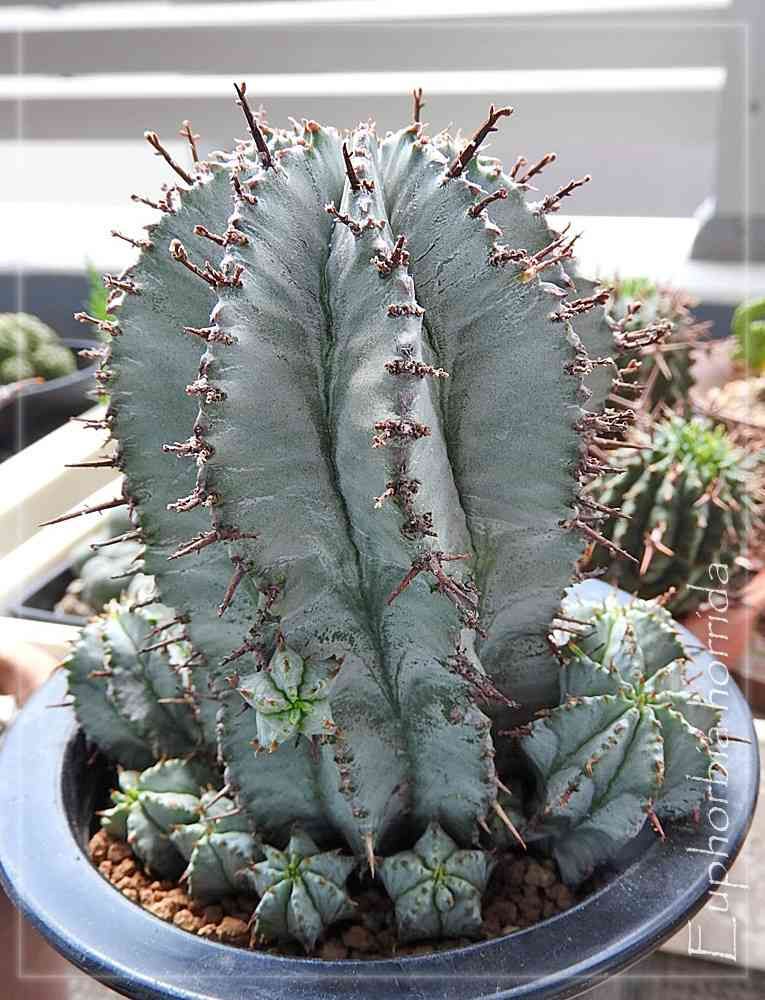 我が家にやって来て3年目。やってきた当時は根元に子株が2つ3つ顔をのぞかせている程度だったけれど、今では数も増えて立派な群生株に。しかも普通は根元から子吹きするのに、胴の途中から出てる子株もある。