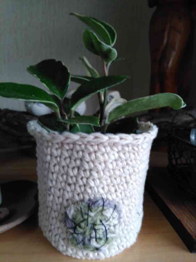手編みで鉢カバーですか⁉若い頃は、良く編み物したな〰今は目が見にくいからご無沙汰 ハンドメイドは良いですね‼