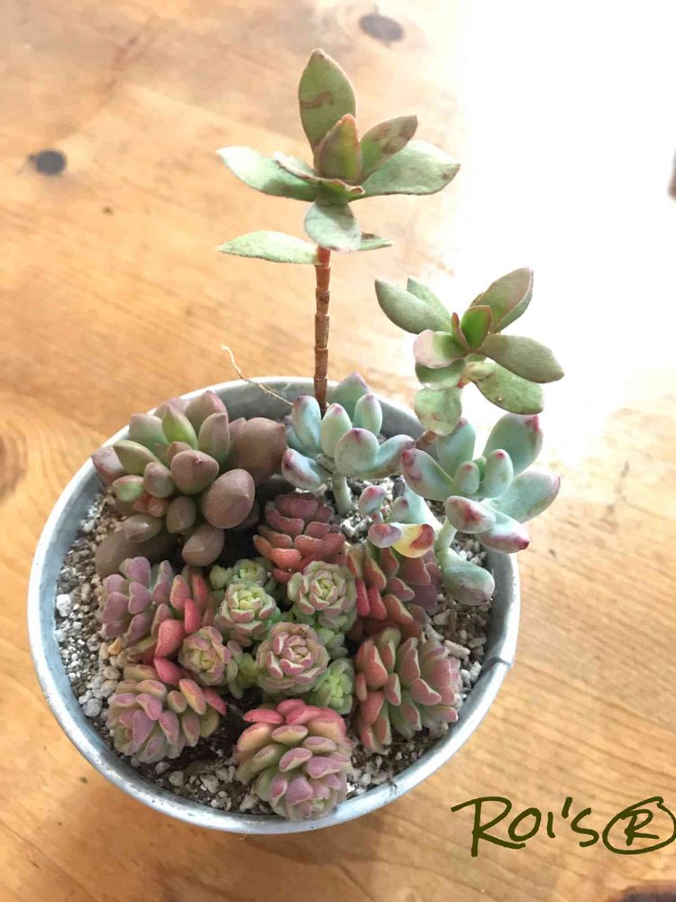 ポチッとしたもの、お連れしたもの、あるもので寄せ植えデス。ずぼらな私はすぐに名前を忘れます、後ろの背高ノッポは名前がわかりません、なのでちょうどいい覚え書きになります。