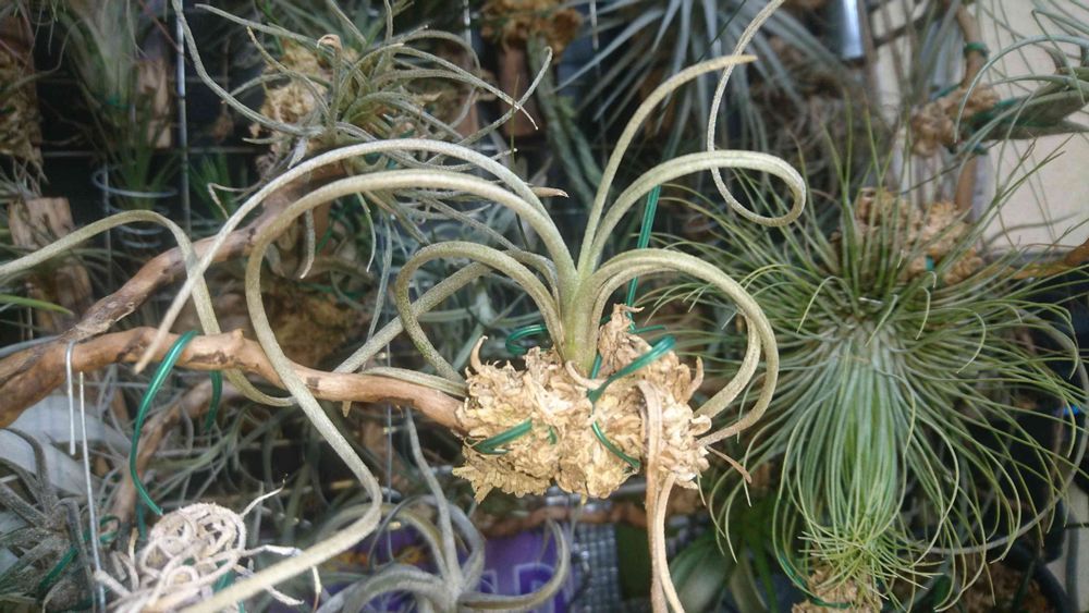 ヒマーになったので投稿でも。超SSサイズで買ったチランジア エクセルタ。下葉を落とし瀕死の状態だったが持ち直してきた。気温が若干ながら下がってきたからかな