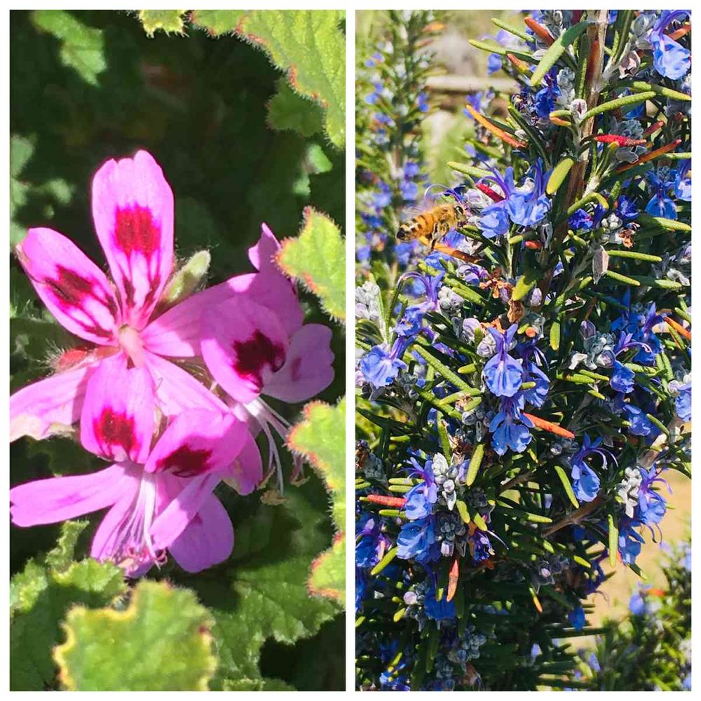 ローズゼラニウムと名前は分かりませんが紫のハーブの花❣️