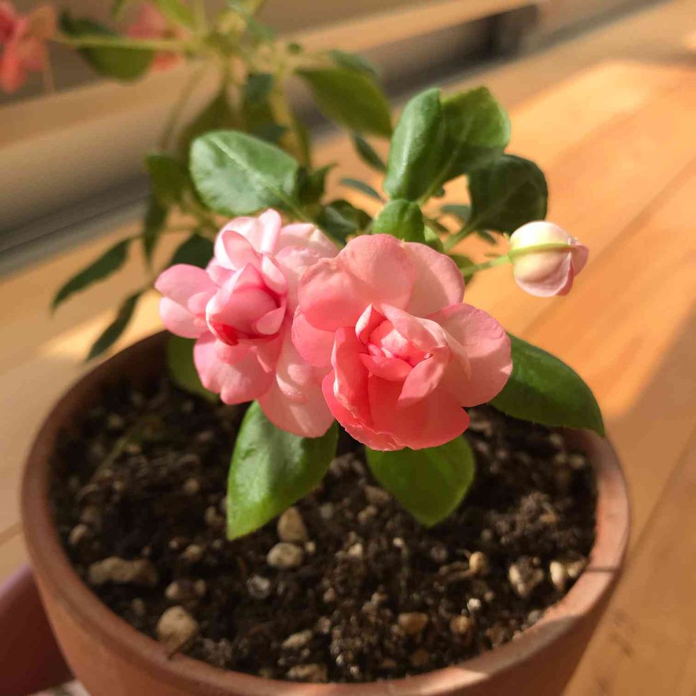 部屋,八重咲きインパチェンス カリフォルニアローズ,花のある暮らしの投稿画像
