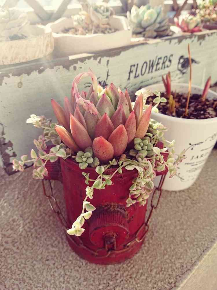 みーさんの消火栓リメ缶にやっと寄せ植えしました。